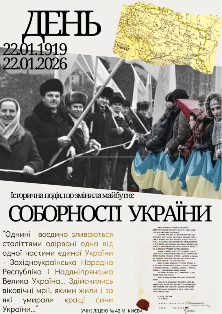 22 січня — День Соборності України Навіть під час вимушених канікул у нашому Київський ліцей № 42 панує дух єдності.…